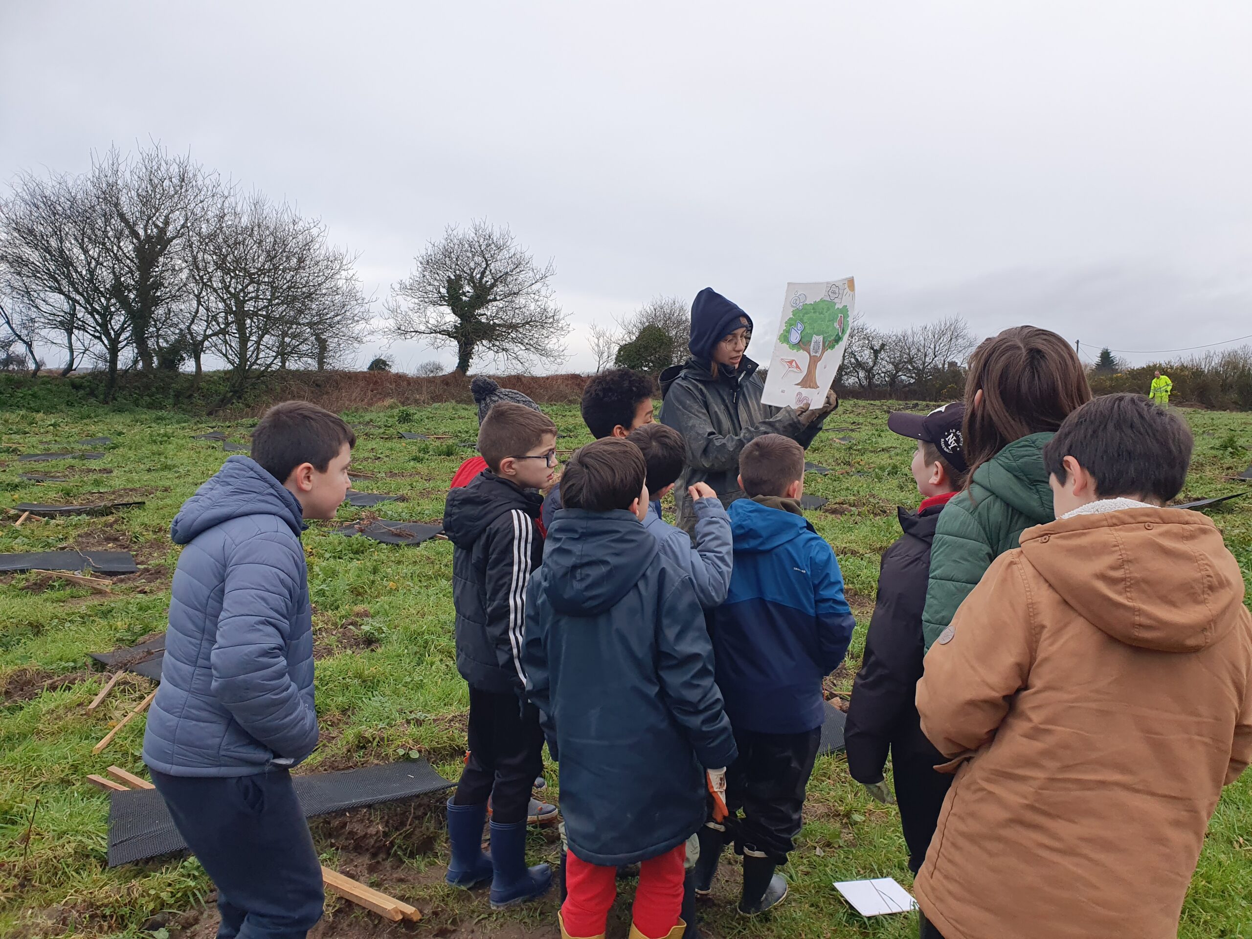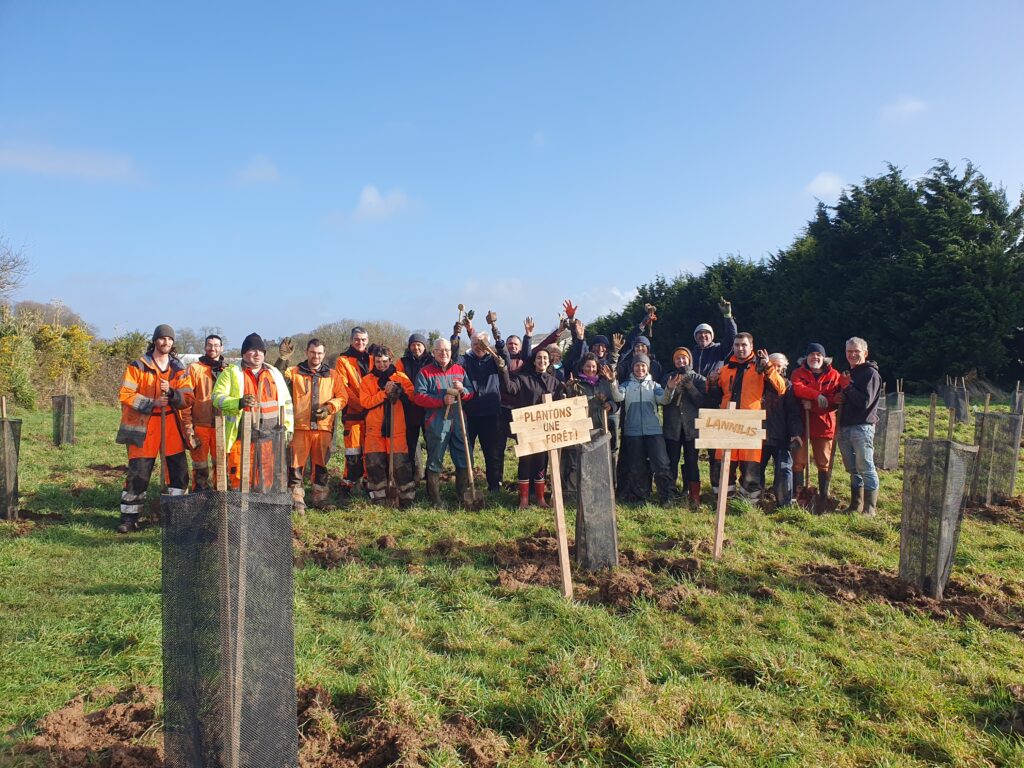 Les communes ont collaboré avec l’association afin de boiser des terrains communaux. Ces actions s’inscrivent dans le programme « De nouvelles forêts pour le climat et la biodiversité » porté par Clim’actions Bretagne avec un modèle innovant de plantations forestières diversifiées, locales et durables. Ce modèle répond à la fois aux défis climatiques et à la préservation de la biodiversité tout en mettant au premier plan la pédagogie et l’implication des scolaires, des citoyens et des acteurs locaux.