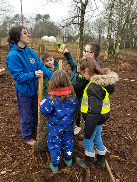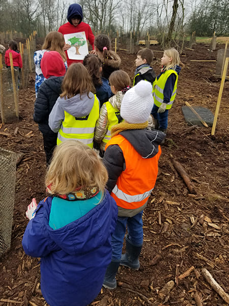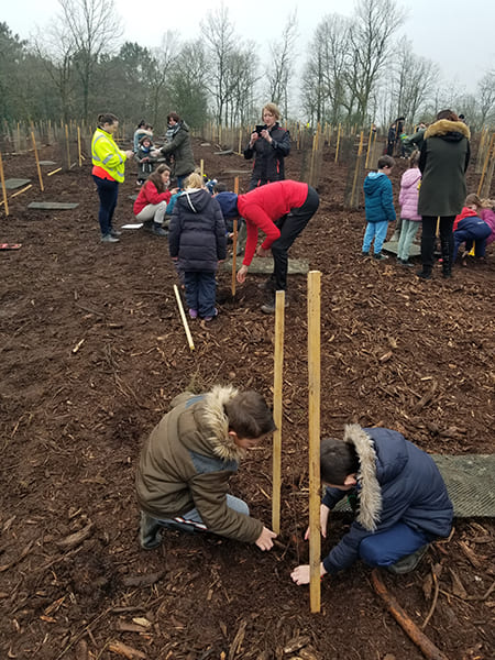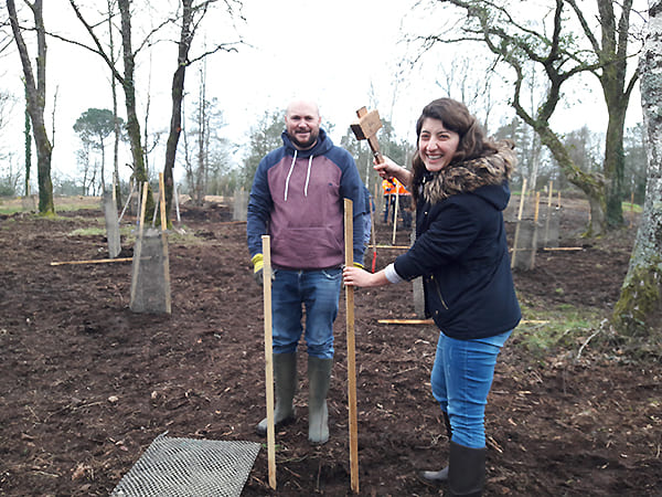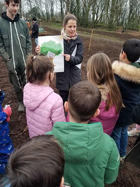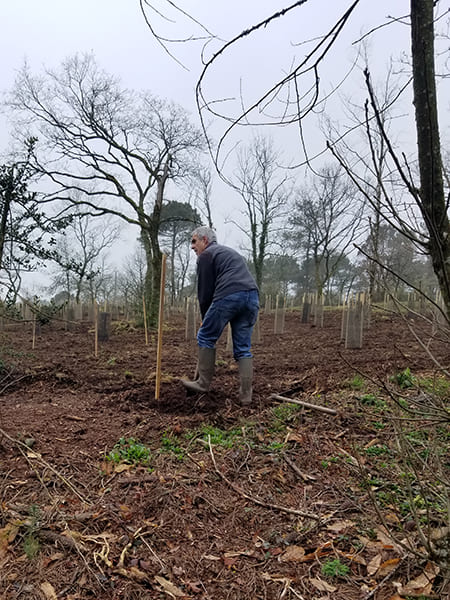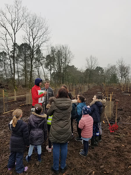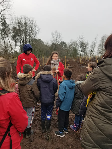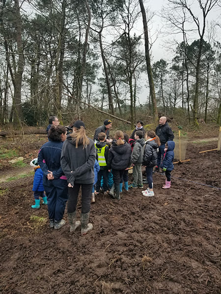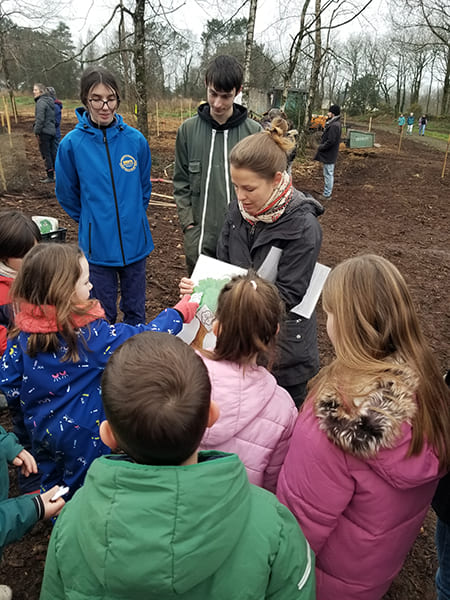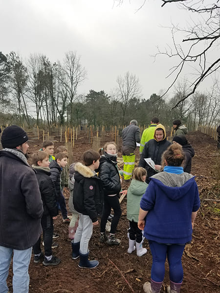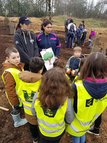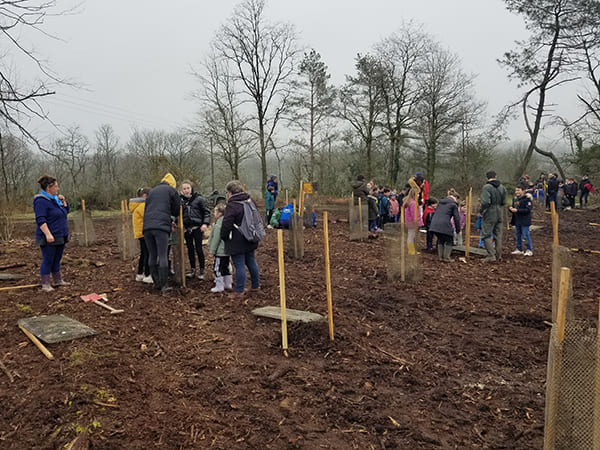 Ils passent la journée ensemble, rythmée par des animations proposées par Juliette Le Cagnec et des conseils pour bien planter un jeune arbre forestier. Pendant ce temps-là quelques élus et le responsable des services techniques qui connaissent bien les habitants bénévoles de La Vraie-Croix les emmènent sur la zone la plus au Sud et les accompagnent la préparation de la plantation.