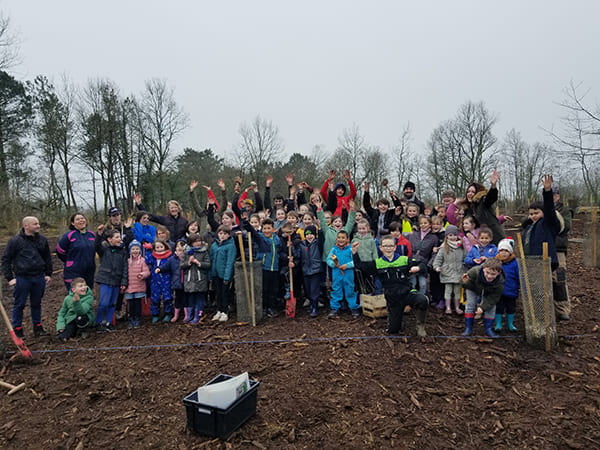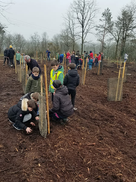 Au total plus de 1300 arbres plantés, plus d’une centaine de personnes mobilisées entre les 30 jeunes de la MFR, les 40 habitants bénévoles de La Vraie-Croix, les 120 élèves de la Vraie-Croix, les bénévoles de Clim’actions Bretagne, 30 salariés des entreprises mécènes, pour » De nouvelles forêts pour le climat et la biodiversité « .