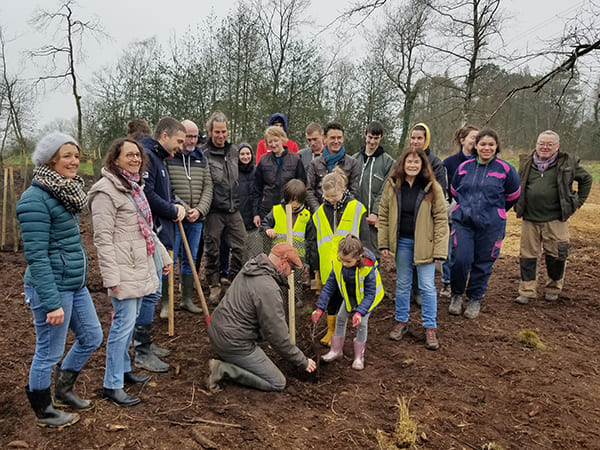 Le partenariat avec la mairie de La Vraie-Croix (propriétaire de la parcelle), les élus, les agents des services techniques et les entreprises mécènes, permet une nouvelle fois à Clim’Actions Bretagne de poursuivre le mise en pratique du programme « De nouvelles forêts pour le climat et la biodiversité » en place depuis 5 ans sur le territoire breton.
