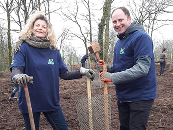 Une vingtaine de salariés de l’entreprise mécène ADM et une dizaine de salariées de l’entreprise Séché Environnement, les bénévoles de Clim’actions Bretagne viennent en renfort pour terminer la plantation avec le groupe des habitants bénévoles de La Vraie-Croix qui œuvrent déjà depuis deux jours. Ils nous amènent une nouvelle énergie, pleine de motivation. Encore un temps fort dans cette journée permettant de faire de nouvelles rencontres et profiter de sensibiliser de nouvelles personnes.