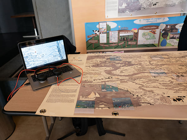 Le Parc Naturel Régional du Golfe du Morbihan, représenté par Maden Le Crom, chargé de mission Transition agricole et alimentaire, animait la fresque des paysages agricoles 2050 afin de collecter les témoignages des citoyens sur le devenir de leur territoire.