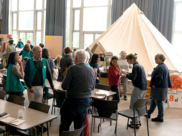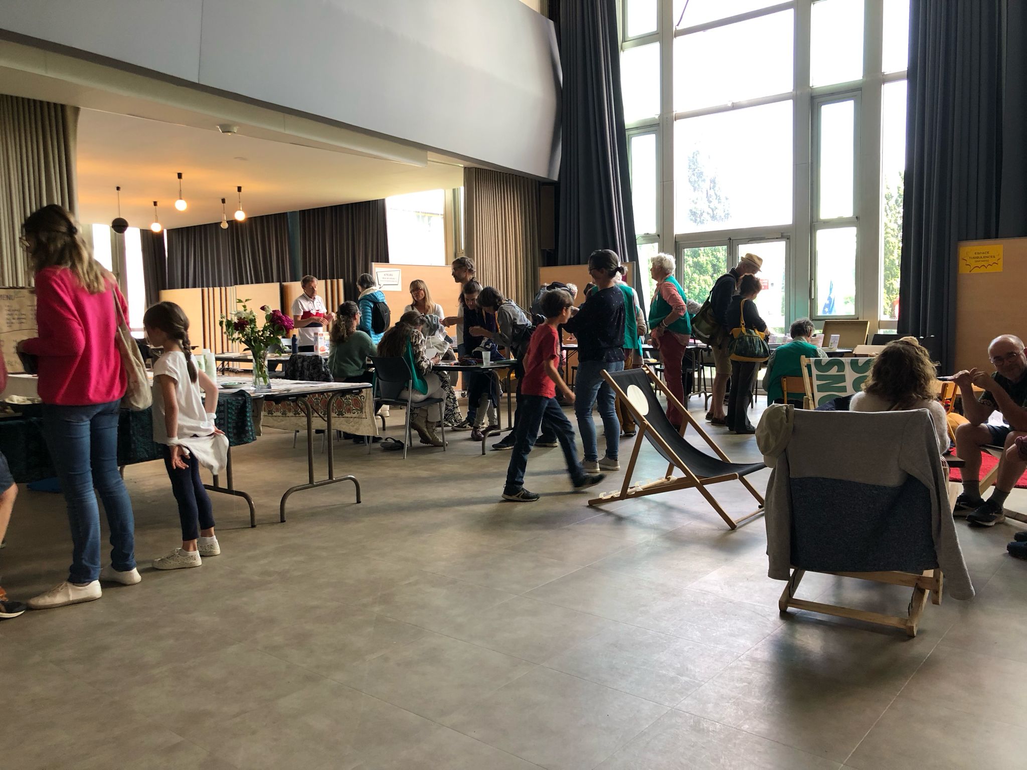 Au Climat de Fête « Bulle de Climat », il n’y a pas que les gourmands qui étaient nourris avec les délicieuses quiches cuisinées par la Coop des Vénètes, le pain d’Ulysse et sa Petite Boulange et les salades de BioGolfe : deux tables rondes et une conférence, dont les sujets attiraient de nombreux participants.