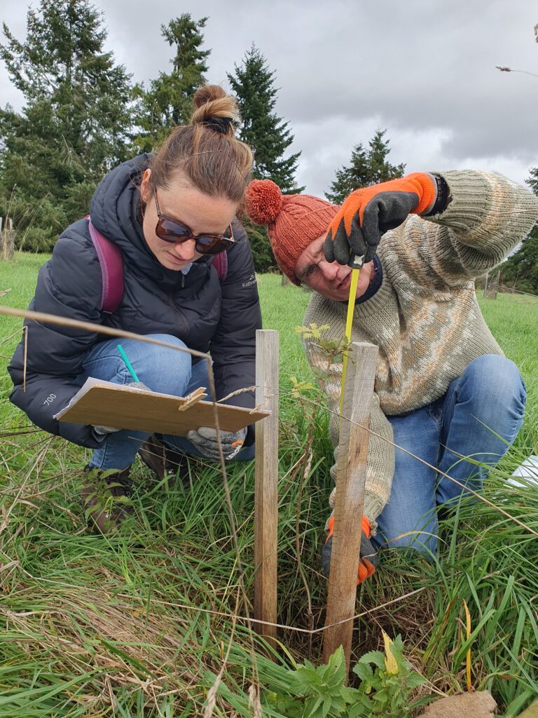 Dans le cadre du programme « De nouvelles forêts pour le climat et la biodiversité », Clim’actions Bretagne organise un suivi de croissance tous les 3 ans après la plantation afin de mesurer la croissance des arbres, le taux de reprise et quelles essences s’adaptent bien sur la parcelle. Ces relevés pourront nous permettre également de mesurer le taux de carbone absorbé par les arbres.