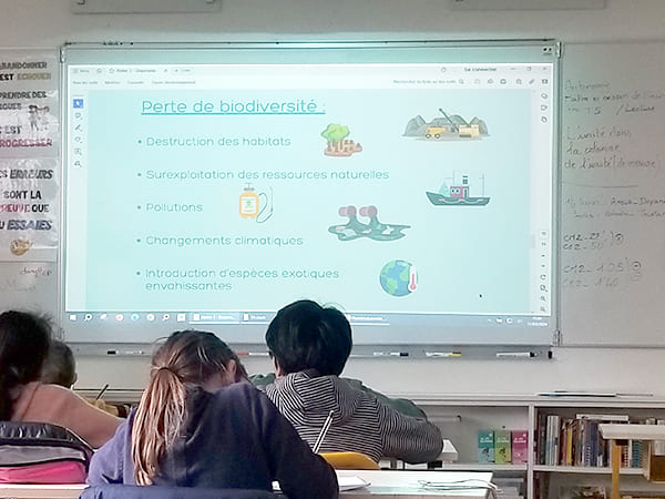 « Qu’est-ce que la biodiversité ? » demande Juliette aux élèves, qui ne manquent pas de lever la main pour répondre : les insectes, les plantes, les animaux…